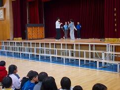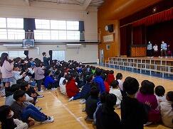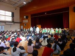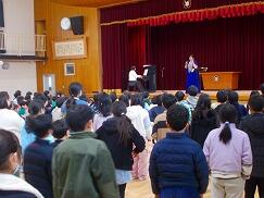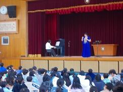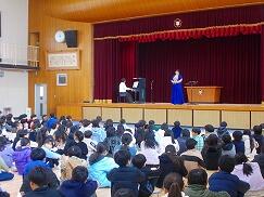 今回の講演会では、各学年の教科書に掲載されている曲を中心にご披露いただきました。マイクを使わずとも体育館いっぱいに響き渡る美しい歌声に、子どもたちはすっかり魅了されていました。「すごくきれいな声だった!」「どこから声が出ているのだろう」といった驚きの声も多く聞かれました。「いのちの歌」では、歌詞が心に深く響き、静かに聴き入っていました。