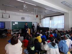 2月17日(火)、3年生は田辺警察署より3名の警察官の方をお招きし、警察の仕事について学習しました。社会科の授業で事前に学んでいたこともあり、子どもたちは関心をもって話を聞き、積極的に質問する姿が見られました。