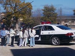 また、防犯や交通安全についてもご指導いただき、不審者への対応や自転車の正しい乗り方など、大切なことを教えていただきました。さらに、実際に盾を持ったりパトカーに乗ったりする体験もさせていただき、学びをより深める貴重な機会となりました。