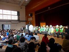 会では、代表児童が、毎朝安全に登校できるよう見守ってくださっていること、いつも優しく声をかけてくださること、困っているときには手を差し伸べてくださることへの感謝の気持ちをお伝えしました。また、これからも感謝の気持ちが伝わるあいさつをしっかりと行っていきたいと話しました。