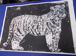 4年生は、「動物」を題材にした版画に取り組みました。動物の形や動き、模様などの特徴を捉えながら、彫り方を工夫して表現しました。丸刀・三角刀・平刀それぞれの使い方を理解し、「どの彫刻刀を使えば表したい線になるのか」を考えながら制作しました。また、毛並みや鱗の様子がよりよく伝わるよう、彫る方向にも気を付けて丁寧に取り組みました。作品は作品展で掲示しますので、ぜひご覧ください。
