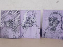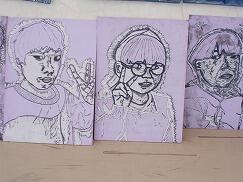 5年生は、「自画像」の版画制作に取り組みました。光と影をどのように表現するかを考えながら、白と黒のバランスを工夫し、どこを彫らずに残せば立体感が生まれるのかを意識して制作しました。また、彫刻刀の種類や彫る向きを工夫しながら、一人一人が丁寧に作品を仕上げていました。