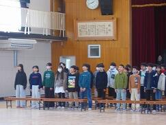 3月4日(水)に、今年度最後の地域仲良し会を行いました。各登校班では、3学期の登校の様子を振り返り、集合時間を守れていたか、きちんと並んで安全に登校できていたか、友達や地域の方に進んであいさつができていたかなどについて話し合いました。そして、1年間、班長・副班長として班をまとめてくれた6年生に、感謝の気持ちを伝えました。