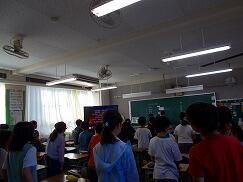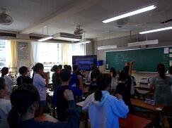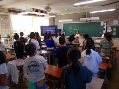 10月18日(土)の運動会に向けて、6年生の応援係が各クラスに入り、応援練習をしています。言葉や振付けを覚え、元気いっぱいの大きな声で練習しています。