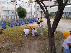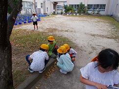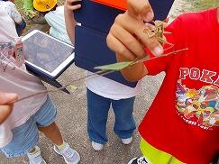 1年生は、生活科の学習で、秋にいる生き物を探していました。葉っぱの裏側や大きな石の下など、子ども達は上手に、昆虫などの生き物を探していました。タブレット端末で写真を撮って、ズームアップしながら体の様子をよく観察していました。