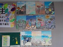 6年生は、図工の授業で、「自転車のある風景」をテーマに絵を描きました。自転車は、実際に自転車を見ながらできるだけ細かい部分までスケッチしました。全員が同じ自転車を描いたにも関わらず、自転車の色や向きを変えるだけで個性溢れる自転車になりました。また、風景についても、一人一人、「こんなところに自転車があったらいいな。」という風景を考えて描きました。光と影、遠近法といった絵画の技法も学習し、素敵な作品が仕上がりました。