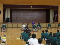 10月24日(金)、総合的な学習の時間に、2年生で「車イスアメフト体験」を行いました。講師として、Wheelchair Football Japan 日本車いすアメリカンフットボール協会代表 糸賀 亨弥 氏に来ていただきました。実際に、車イスに乗っての体験は、生徒達にとって有意義なものでした。