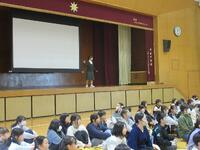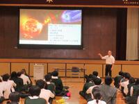 10月27日(月)、5・6時間目に、3年生の知的好奇心をくすぐる体験授業を行いました。今回は、講師として、京都大学大学院理学研究科准教授 野上大作 氏に来ていただきました。体育館がまるでプラネタリュームのようになり、天体の不思議さを教えていただきました。生徒達は、銀河系の配置などに驚いている様子でした。