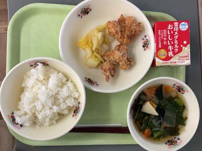 ◎牛乳 ◎ごはん ◎鶏肉の唐揚げ