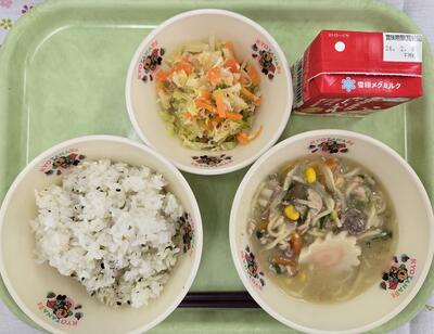 今日の給食は、子どもたちが大変心待ちにしていた「みそラーメン」がでました。どのクラスも嬉しそうに箸を進め、食後には「給食きれいに残さず食べたよ!」と報告してくれる子どももいました。