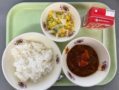今日の京田辺市リクエスト給食は、ごはん・丼部門で1位になった、わくわくビーフカレーです。調理師さんがルーから手作りし、大きな釜でコトコト煮込んでいるので、お肉や野菜のうまみがたっぷり溶け込んでいます。ご飯と一緒に味わってくださいね。
