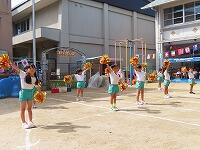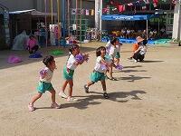 普賢寺幼稚園は歌を歌ったり、ポンポンやリボンで演技をしました。