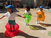 年中たんぽぽ組はおばけになりきって得意技を披露したり、ダンスパーティをしたりしました。親子競技はお父さんお母さんにおんぶしてもらってしっぽとり大会をしました。白熱した大盛り上がりのしっぽとり大会でした。