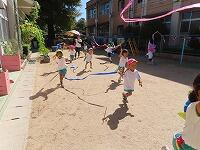 戸外で一緒に遊びました。固定遊具で遊んだり、砂場で遊んだり、縄跳びをしたり…