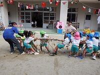 年中たんぽぽ組と年少もも組も「がんばれー」と大きな声で応援しました。