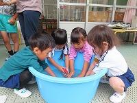 今年度は、年長児が幼稚園でも、たらいでお米を育て、刈って脱穀までがんばりました。