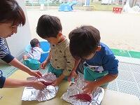 やっと秋らしくなり、気温も下がってきました。あたたかい焼き芋をみんなでいただき、心も体もぽかぽかになりました。おいしかったね。
