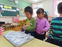 「いいにおい」「早く食べたいな」と焼けるのを楽しみにしていました。