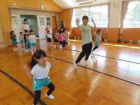ウサギ、カエル、ゾウなどの動物や忍者になりきってリズムに合わせてジャンプしました。