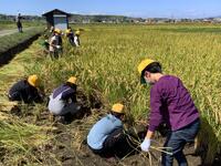 稲刈り体験(5年生) 投稿日時 : 10/09 kusag02 台風の影響が心配されましたが、今日は晴天に恵まれ 5年生の子どもたちは、元気よく稲刈り体験に出かけました。 地域の方々のご協力の元、田植え体験で植えた苗が 大きく成長し、立派に実っていました。 子どもたちは、稲刈り鎌を使いながら、1束ずつ 稲刈りをしました。毎日食べるお米のありがたさ、 農家の方々の努力や工夫を噛みしめながら、たくさん お米を食べてほしいです。 Tweet {{options.likeCount}} {{options.likeCount}} 0 コメント