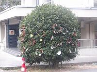 体育館横の木に図工クラブが作成したレリーフなどが飾られています。とてもきれいでほっとした気持ちになります。