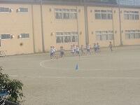 12月10日、グラウンドでは、1年生が持久走をしました。5分間でトラックを何周回れるかに挑戦!「がんばれ、がんばれ」「ファイト、ファイト」とお互いに応援する声がグラウンドに響いていました。