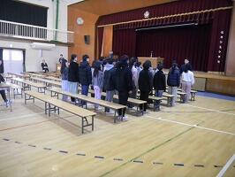 本日、卒業式に向けた予行練習を行いました。入場から証書授与、呼びかけ、歌など本番と同じ流れで取り組み、卒業生も在校生も真剣な表情で臨んでいました。