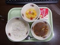 この日の献立は、牛乳・ごはん・わくわくビーフカレー・フルーツポンチです。