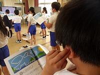 1年生の教室に行ってみると、教科書に掲載されている絵を見て、同じものを囲むことをしていました。じっくりと考えられていました。授業中の姿勢や発表の方法など、少しずつ小学校の方法を学んでいます。