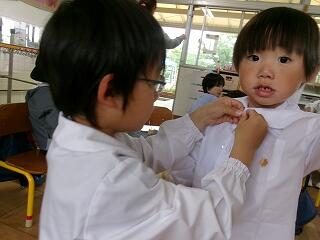 難しい一番上のボタンをとめたりと、いろいろなお手伝いをしています。