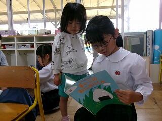 準備が終わると、自然と絵本を読んであげていて、お部屋のあちこちで温かいかかわりが見られました。