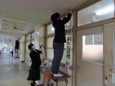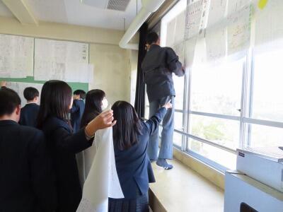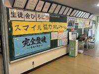 このスローガンは、校内の外の掲示板と職員室前に掲示されています。