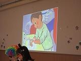 てを洗わないでいるとどんなことが起こるのか、スライドで教えてくれました。