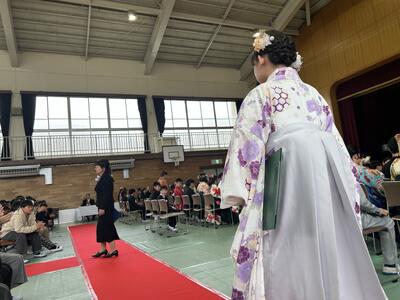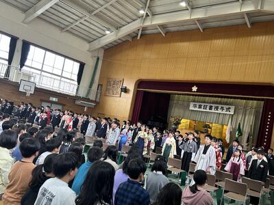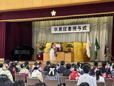 その後、校長式辞や来賓の祝辞が述べられ、卒業生の門出を温かく励ましていただきました。祝辞を静かに聞く卒業生たちの姿は、次のステージへ進む準備が整ったことを感じさせてくれました。