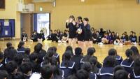 まず初めに、先輩が部活動紹介を行いました。部活動の説明だけでなく、実際にプレーや作品を見せてもらい、1年生は今日から始まる部活動体験を楽しみにしている様子でした。各クラブ、趣向を凝らした発表で、会場は拍手に包まれていました。また、生徒会本部役員からは田辺中学校の1日や学校生活、学校行事などをわかりやすく説明してもらいました。生徒会スローガン「共成~取り残さない千の笑顔~」に込められた思いも1年生に伝わったと思います。最後に、3年生から合唱が披露されました。先輩たちの学年合唱の迫力に、感動し、合唱コンクールに期待も膨らんだのではないでしょうか。