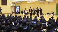 先日の素晴らしかった卒業式について触れられ、1、2年生については、馴染みある様々な先輩の姿を見て過ごしてきたなかで、1年後、2年後、1日1日をどう積み重ねていくかだということを話されました。身近な良き先輩の姿を見て、良かったなと思える部分は真似をし、それでも、こういう部分は自分たち(の学年)はこうしていこうと、伝統とはそういうふうにして創られていく。「さらなる高みをめざして」ほしいという話がありました。