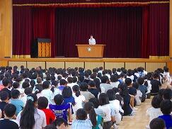 生活指導の先生からは、楽しい夏休みにするために、「自分の命を守る」ための約束についての話がありました。