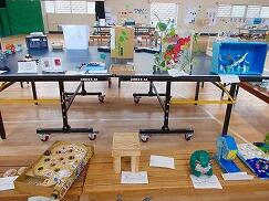 子ども達が、夏休みに取り組んだ作品を展示しています。興味を持って調べたことや、工夫して作った工作、体験レポートなど、夏休みの頑張りの成果が表れています。是非、ご覧ください。