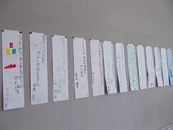 1年生は、図工の授業で、ひまわりの絵を描きました。クレヨンで、たくさんの種の一つ一つに自分の好きな色を塗り込み、個性豊かなきれいな花が咲きました。茎を描いて、完成するのが楽しみです。