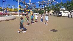 子ども達は元気に、班ごとにアトラクションを回っています。男女の仲もよく、お気に入りのアトラクションに何回も挑戦しているグループもありました。